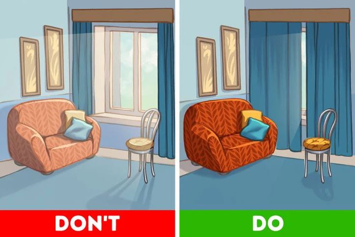 Để một chút ánh sáng mặt trời chiếu vào nhà có thể giúp bạn cảm thấy rất dễ chịu và phấn chấn. Tuy nhiên, nó có một nhược điểm lớn là tia UV sẽ làm cho thảm, đồ nội thất và các tác phẩm nghệ thuật của bạn mờ dần, mất đi màu sắc và sự sống động. Cách dễ nhất để bảo vệ đồ nội thất có giá trị của bạn là đặt chúng ở những nơi có bóng râm trong nhà. Nếu không muốn sắp xếp lại đồ đạc, bạn vẫn có thể giữ chúng nguyên vẹn bằng cách kéo rèm lại khi bên ngoài trời nắng. Phim cách nhiệt cũng là lựa chọn tốt bởi nó ngăn được tới 99,9% tia UV.