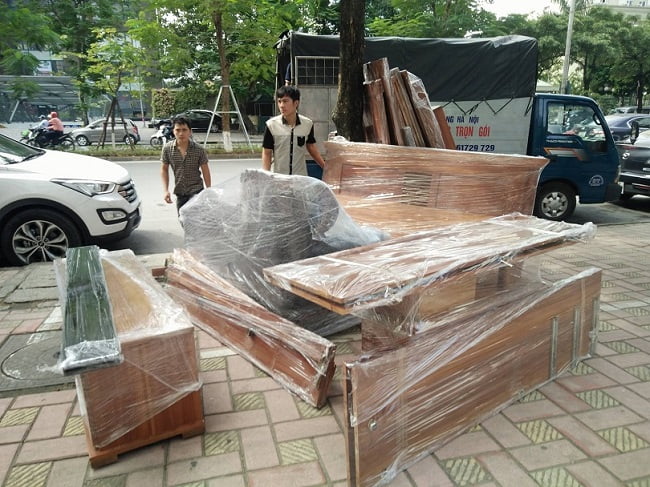 Khi đóng gói bàn ghế gỗ hay tủ gỗ thì bạn cần sử dụng thêm màng bọc nilong quấn quanh để tránh những trầy xước hay bám bụi lên đồ vật đảm bảo quan toàn cho đồ đạc trong quá trình di chuyển đến nhà mới.